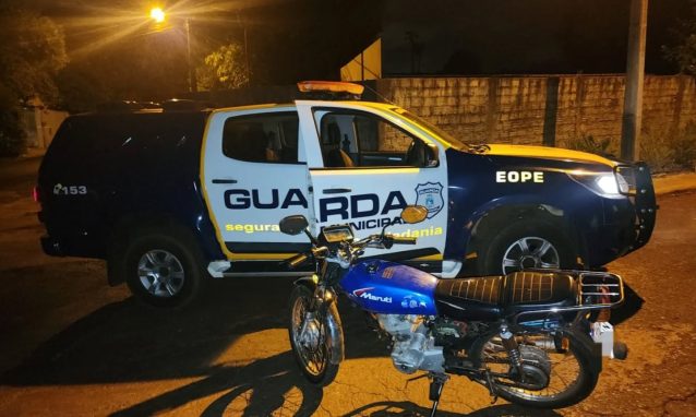 Uma equipe da Guarda Municipal recuperou uma motocicleta com registro de roubo e apreendeu dois adolescentes durante patrulhamento na Rua Antônio Alves, no bairro Cidade Nova.
