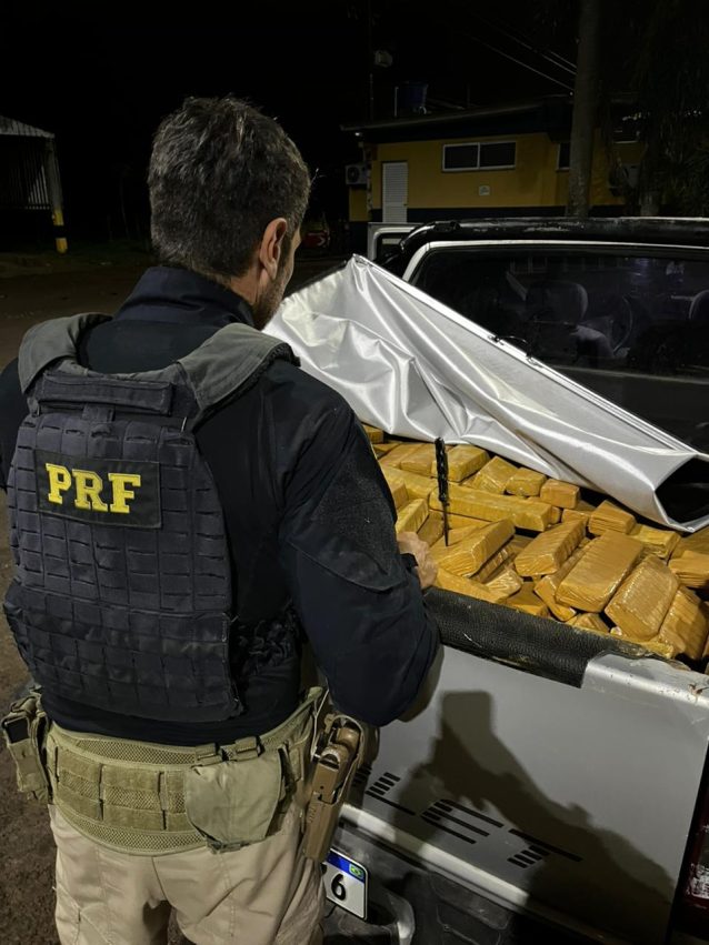 De acordo com a PRF, os policiais deram ordem de parada ao condutor de uma caminhonete que trafegava pela rodovia. Durante a abordagem, a equipe realizou uma vistoria no veículo e encontrou diversos tabletes de droga escondidos no compartimento de carga.