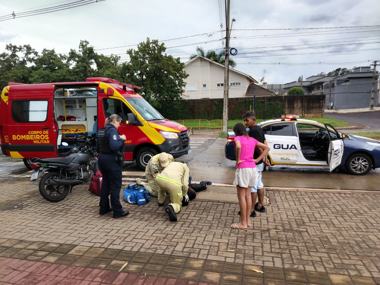 De acordo com informações da ocorrência registrada pela Guarda Municipal, uma equipe realizava patrulhamento pela região quando foi acionada por populares para verificar um sinistro de trânsito envolvendo a queda de uma motocicleta em frente à Igreja São José Operário.
