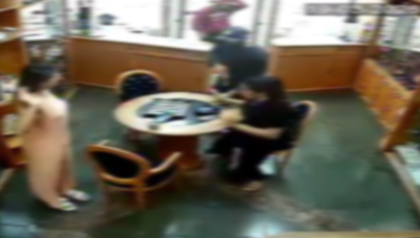 Já no interior do estabelecimento, a dupla rende duas funcionárias. Um dos suspeitos exibe o que aparenta ser uma arma de fogo e anuncia o assalto. As vítimas são obrigadas a entregar joias, dinheiro e objetos pessoais, sendo levadas até os fundos da loja, onde fica o caixa. A ação dura cerca de cinco minutos, tempo suficiente para que os criminosos recolham diversos itens.