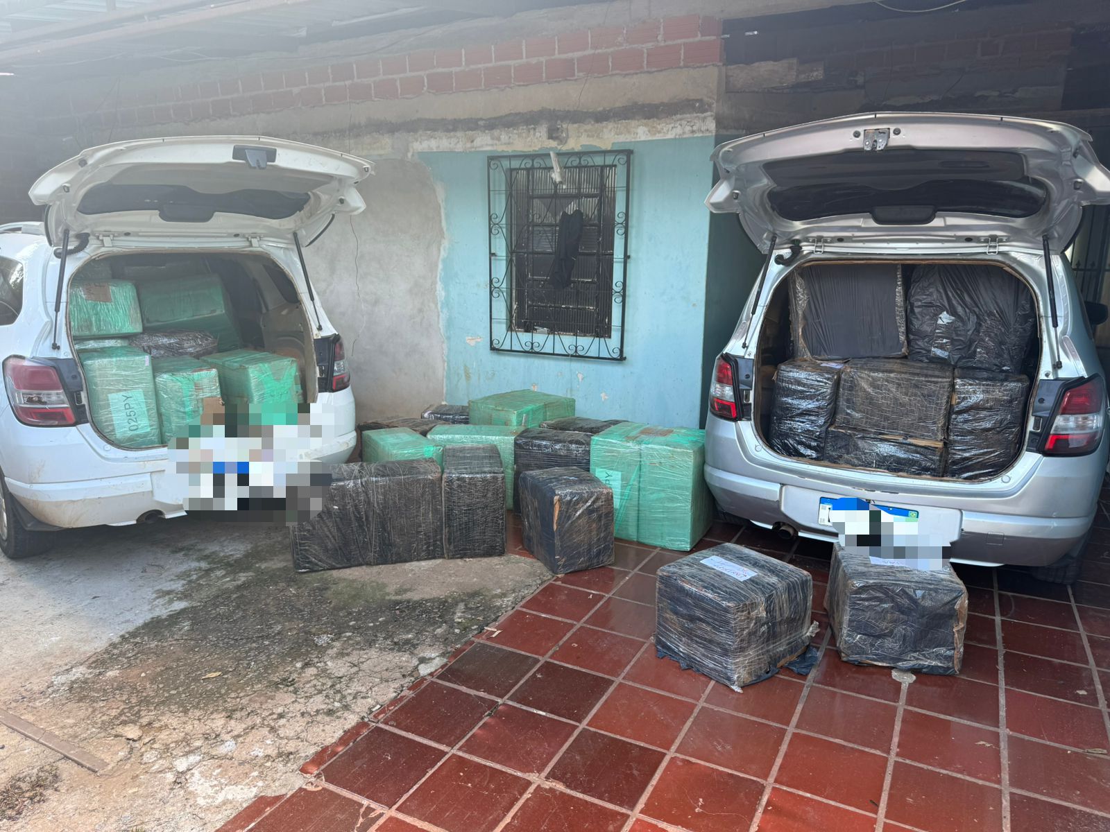 No local, os agentes encontraram diversos volumes com produtos de origem estrangeira, incluindo medicamentos emagrecedores, aparelhos celulares e cigarros eletrônicos. Também foram apreendidos dois veículos carregados com mercadorias contrabandeadas, além de fardos armazenados no depósito.