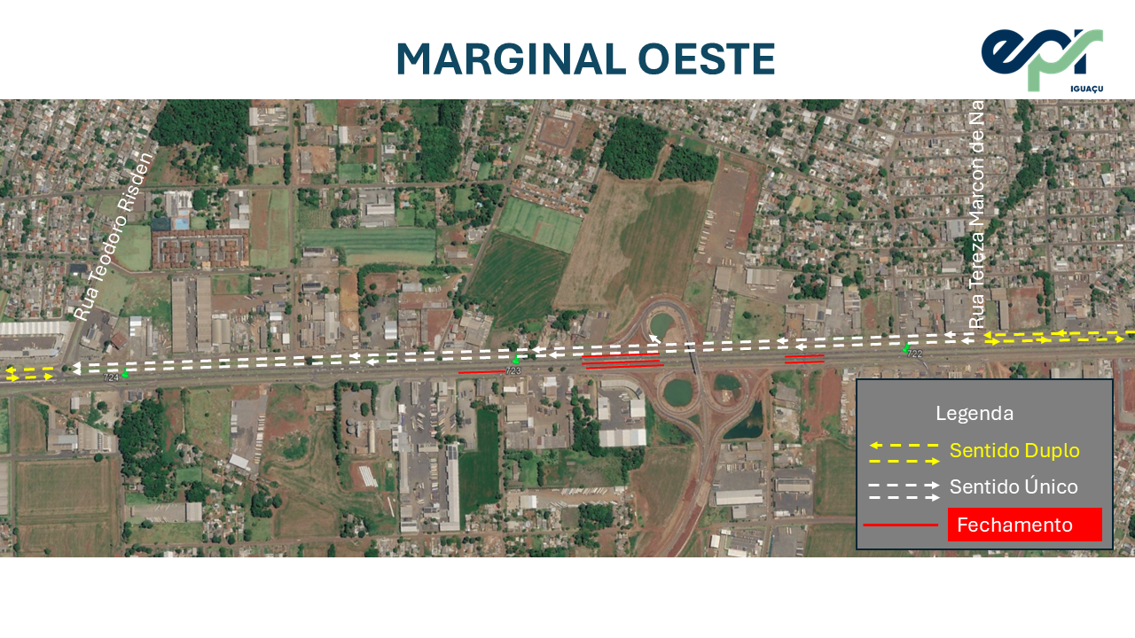 Nas marginais, a Marginal Oeste, entre as ruas Tereza Marcon de Nadai e Teodoro Risden, passa a ter sentido único em direção ao Paraguai. Já a Marginal Leste, entre a Rua Mercúrio e a trincheira no km 721, terá sentido único em direção a Cascavel.
