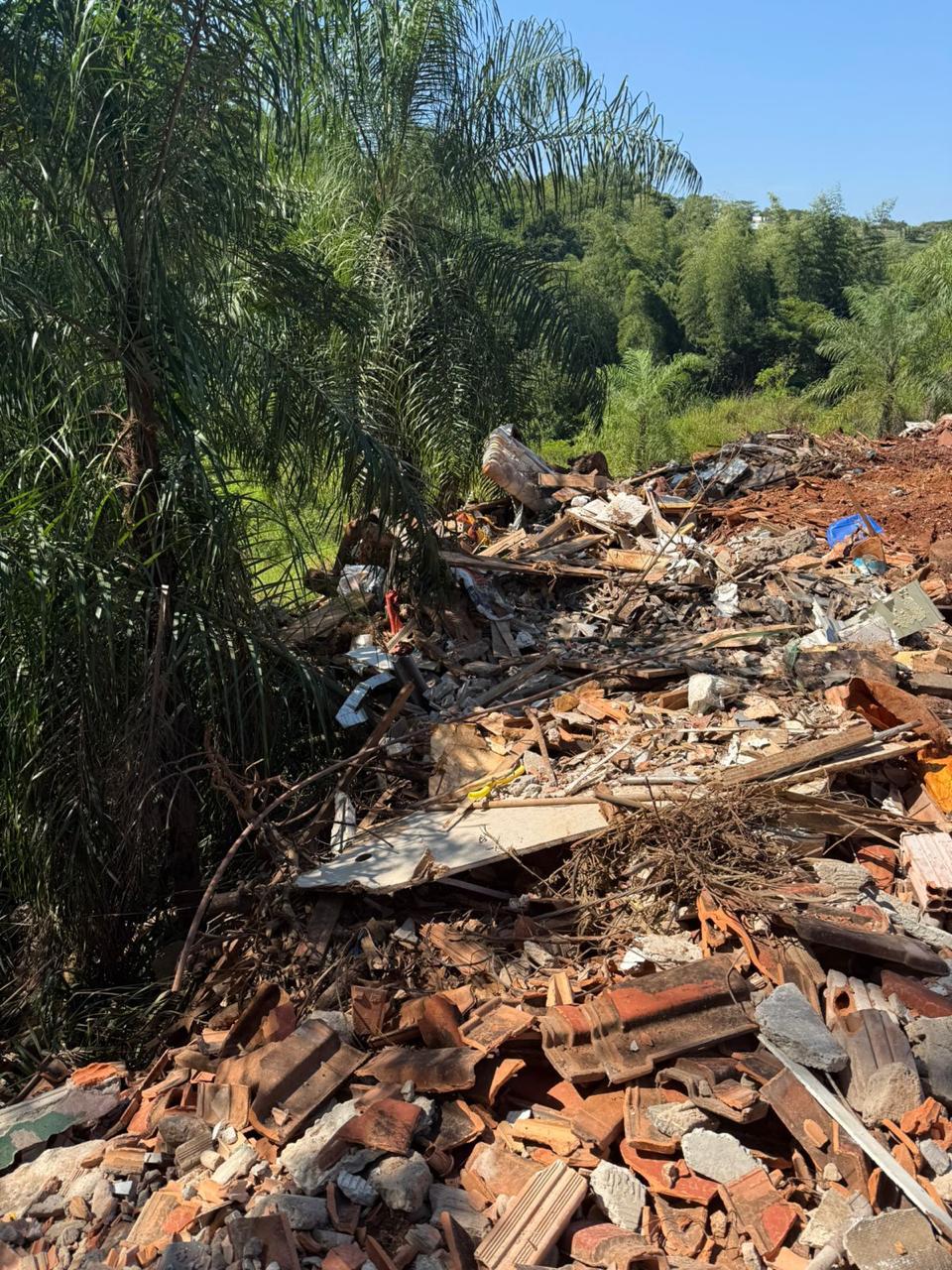 Ao chegarem ao ponto suspeito, os policiais constataram grande volume de entulho já despejado, incluindo restos de construção civil, colchões, plásticos e materiais orgânicos. O caminhão estava estacionado no local para descarregar mais resíduos. A área fica a cerca de 80 metros de um riacho e a aproximadamente 200 metros do Rio Paraná, o que agrava o impacto ambiental por se tratar de uma região sensível.
