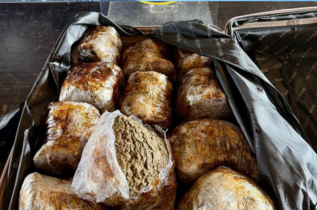 A substância, com características semelhantes ao haxixe, foi encontrada na mala de uma mulher brasileira, de 29 anos, natural de Chapecó (SC). A droga havia sido adquirida em Ciudad del Este, no Paraguai, configurando o crime de tráfico internacional de entorpecentes.