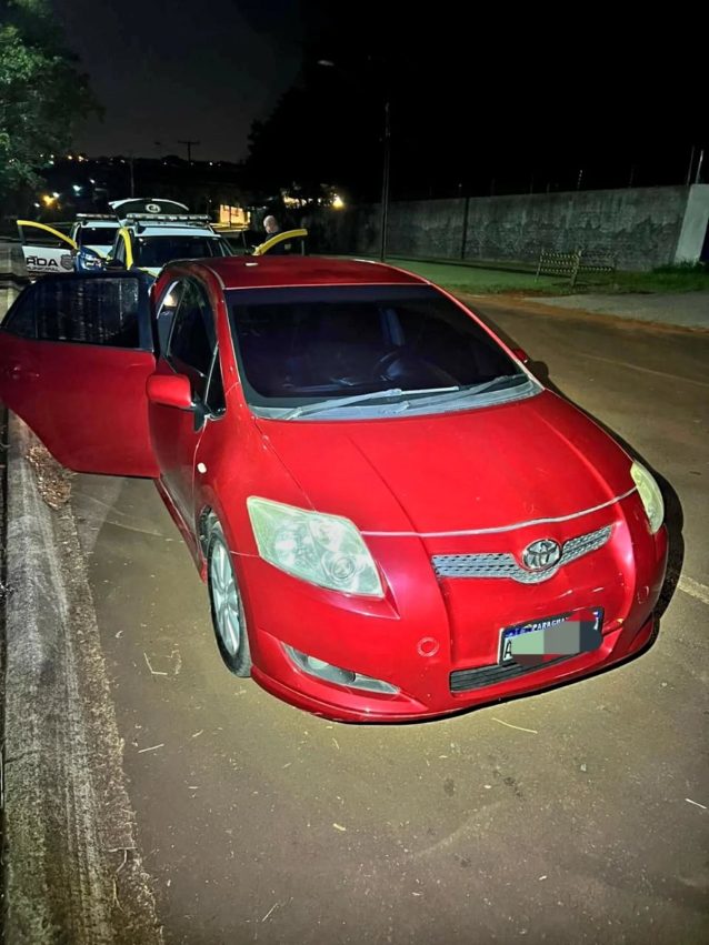No local, os agentes identificaram um veículo com placas paraguaias que correspondia às características repassadas. Durante a ocorrência, uma equipe de apoio que já estava nas proximidades realizou a abordagem de dois indivíduos. Em revista pessoal e consulta aos sistemas, nada de ilícito foi encontrado inicialmente. Questionados, eles relataram que estariam utilizando sinal de internet de forma irregular nas imediações.